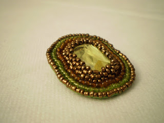 Pierwsza broszka którą zrobiłam techniką haftu koralikowego w odcieniach miodowo brązowych.